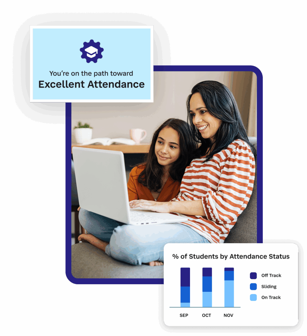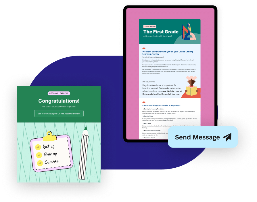 Keep students in school by engaging families all year long. Our automated attendance interventions and positive messages work together to celebrate progress and prevent absenteeism.