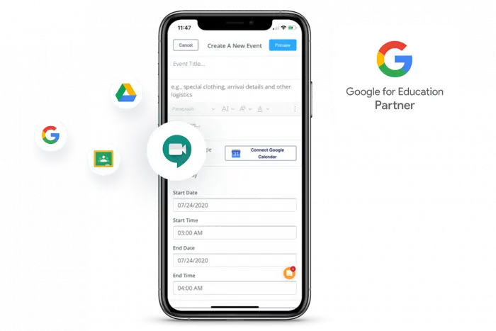 Events and conference times will automatically sync with Google Calendar and add a conferencing link through Google Meet. This helps families keep track of important events and conference information, all in one place.