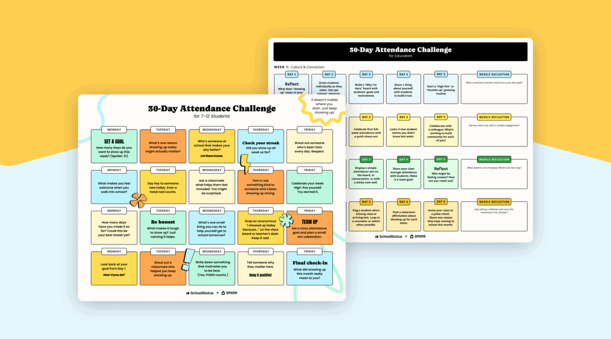 We’re kicking it off with a 30-Day Attendance Challenge with free (and fun) actionable resources to set the pattern of daily attendance for that first crucial month of school.