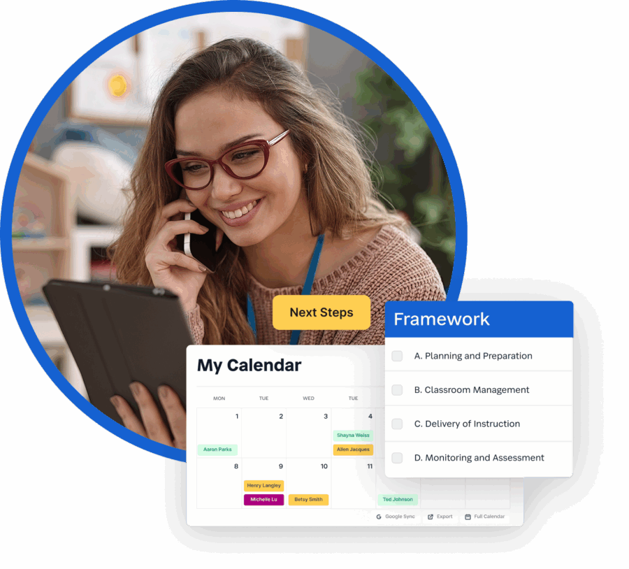 Coaching works best when everyone follows the same playbook. SchoolStatus Boost: Coach brings your framework, whether it’s district-designed or based on a popular model, into every coaching cycle, keeping you consistent and aligned.