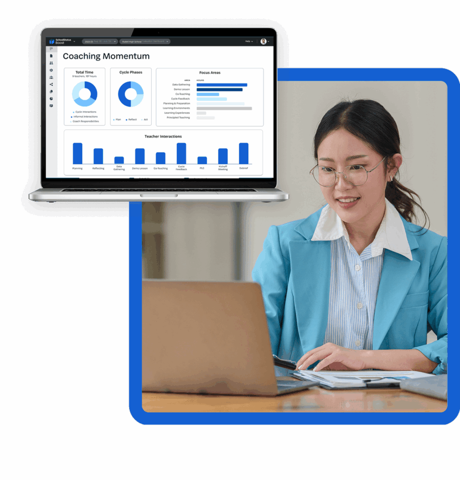 SchoolStatus Boost: Coach lets us measure how time is spent—co-teaching, modeling, planning—and gives us insight into how coaches are progressing through cycles. It makes the invisible work of coaching visible.