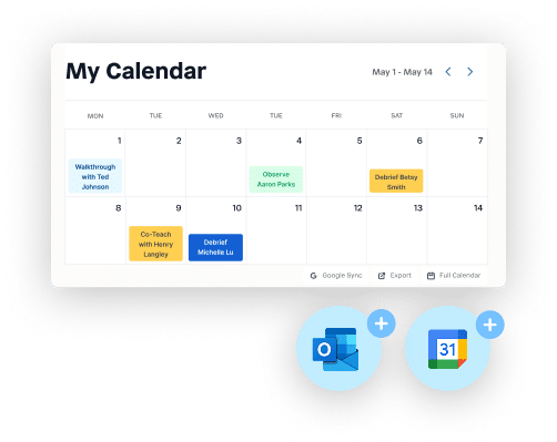 Sync with Google or Microsoft calendars to manage upcoming events, upload evidence and resources, and take notes during classroom visits. SchoolStatus Boost: Coach brings everything together in one place so coaching stays organized, visible, and easy to manage.