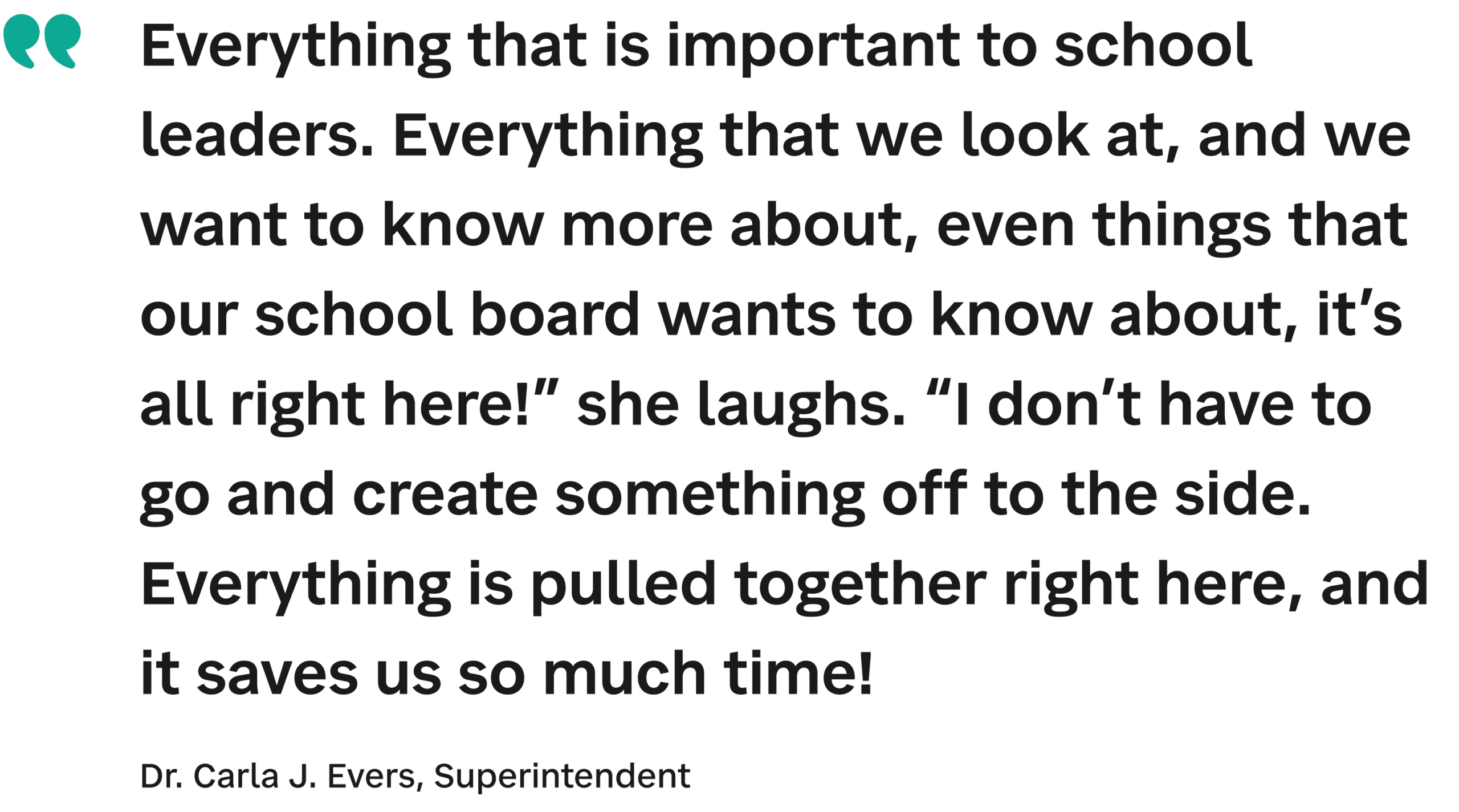 The automatic, integrated data inside of SchoolStatus has enabled Dr. Evers to build stronger relationships with stakeholders by making information accessible and actionable.
